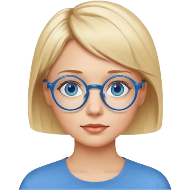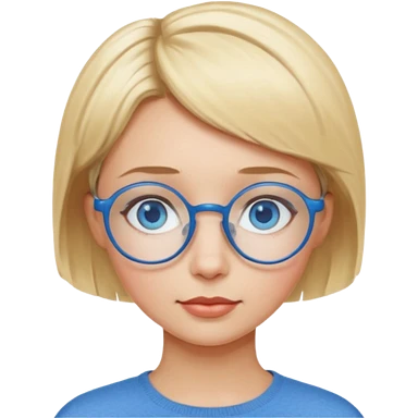 blonde girl with blue eyes and brown round glasses emoji | AI Emoji Generator