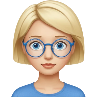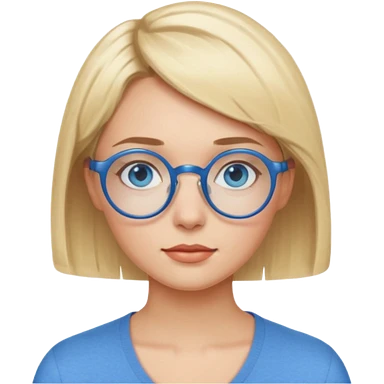 woman with short blonde haire, blue eyes and blue round glasses emoji