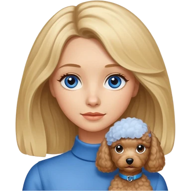 blonde girl with blue eyes and shoulder-length hair holding a gray Staffordshire terrier that has a thin white line between its eyes emoji | AI Emoji Generator