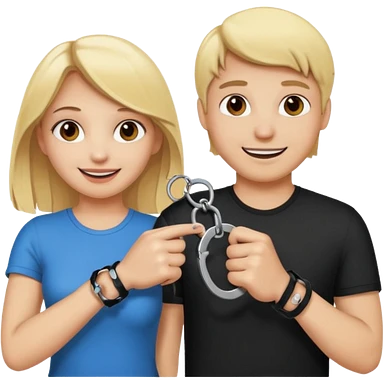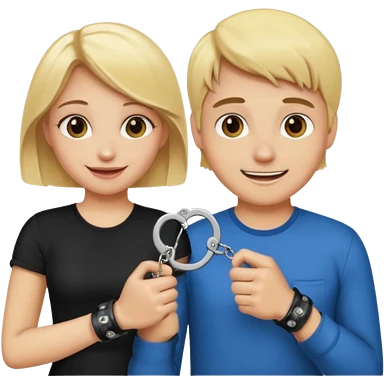 a blonde girl holding handcuffs with her brown haired boyfriend emoji