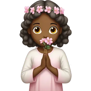 white with blonde hair praying girl with pink flora in hands and floral crown emoji