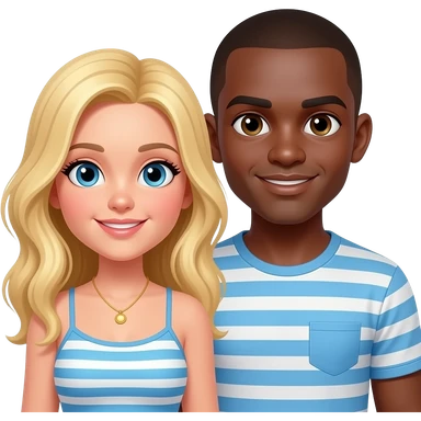 Blonde girlfriend hugging & kissing black boyfriend with shaved head emoji | AI Emoji Generator