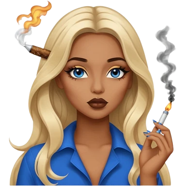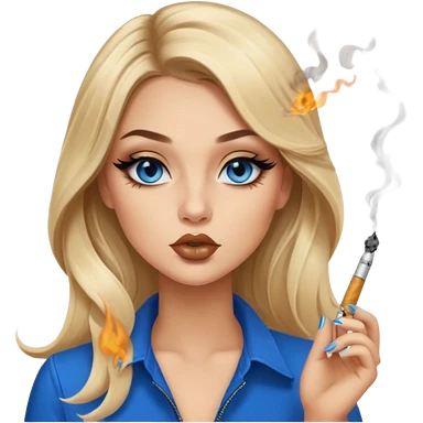 blonde gorgeous girl long hair with latina makeup smoking a cigarette and blowing smoke baddie winged eyeliner emoji | AI Emoji Generator