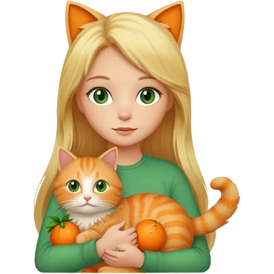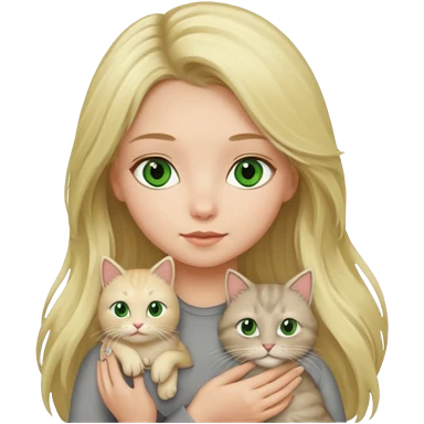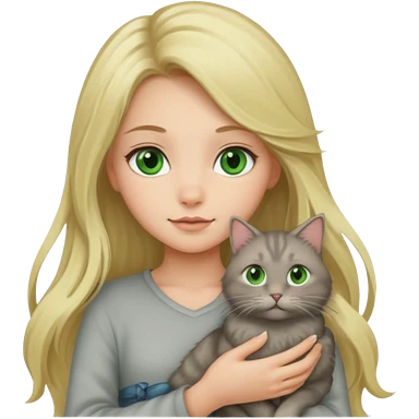 Blonde green eyed girl with long hair holding cat emoji | AI Emoji Generator