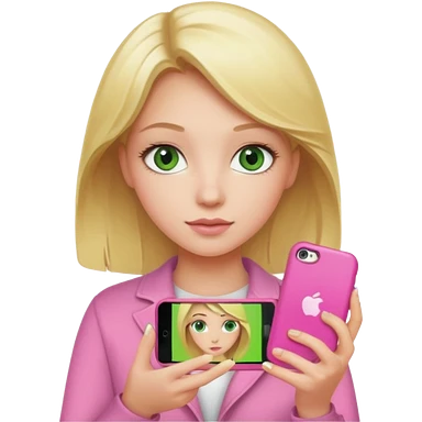 Blonde green eyed girl with iPhone emoji