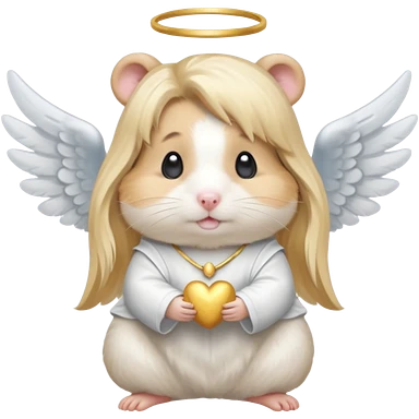 Angel hamster wearing angel outfit with blonde long hair emoji