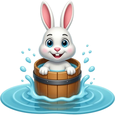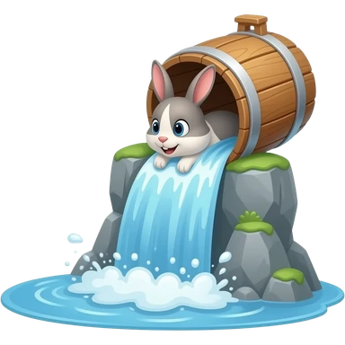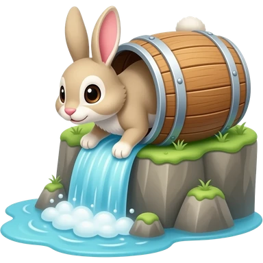 bunny floating in an upright barrel submerged in a stream going over a waterfall emoji