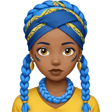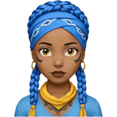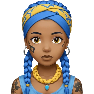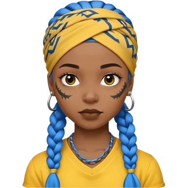 blue braided hair with yellow head bandana and lots of face tattoo black skin girl emoji