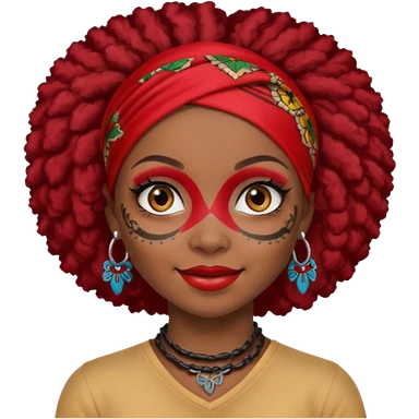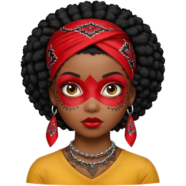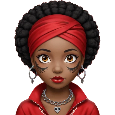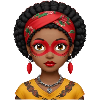 afro black hair with red head bandana and lots of face tattoo black skin girl emoji