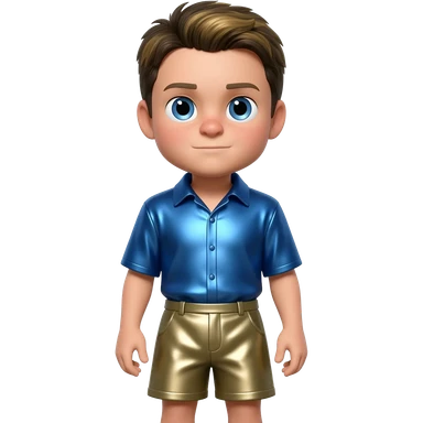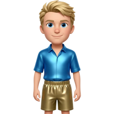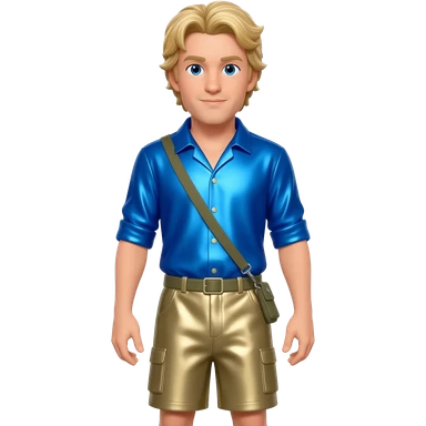 Martin Kratt with blue eyes, sandy blonde hair, periwinkle blue metallic shirt, khaki metallic baggy shorts emoji