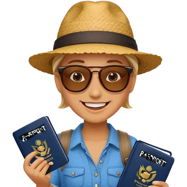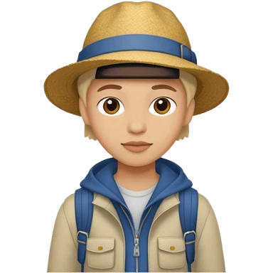 blonde haired Traveler character with passport, backpacker, male emoji | AI Emoji Generator