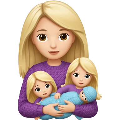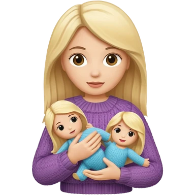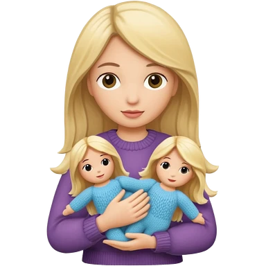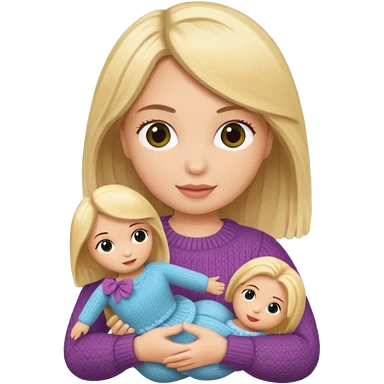 woman holding blonde knitted doll emoji