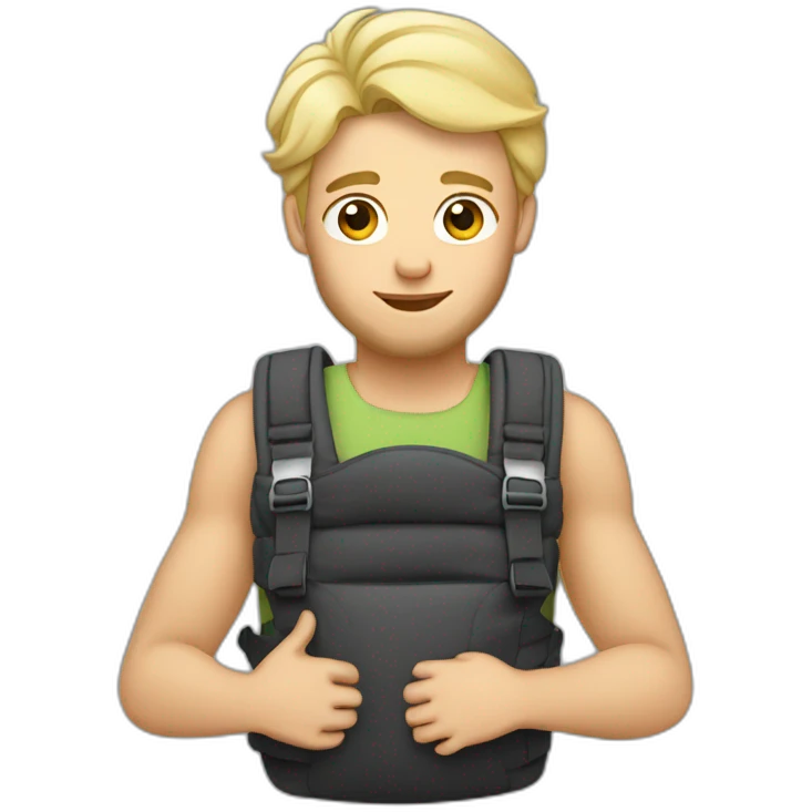 Blonde man wearing a baby in a baby carrier with broad shoulders and short scruffy hair emoji | AI Emoji Generator
