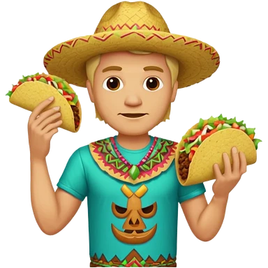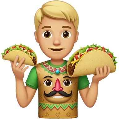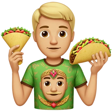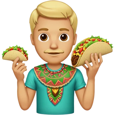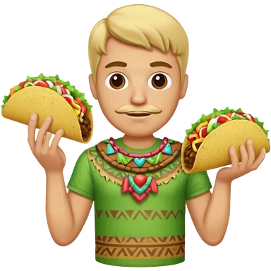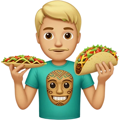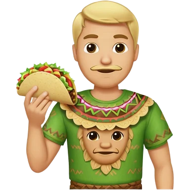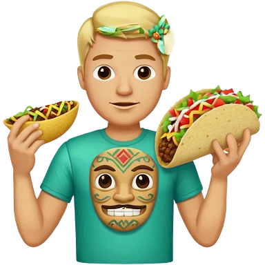 blonde man with tiki shirt holding taco emoji
