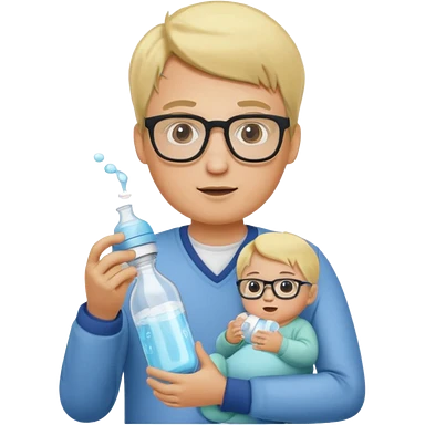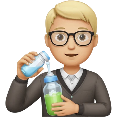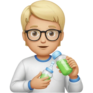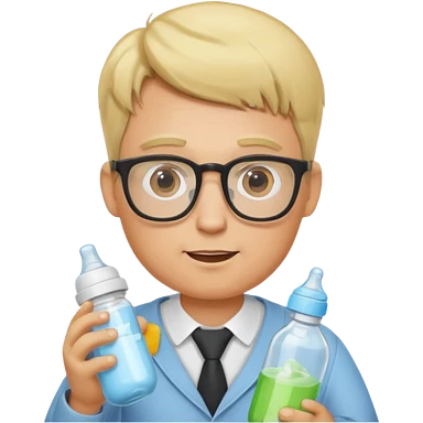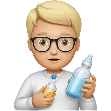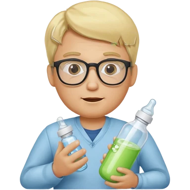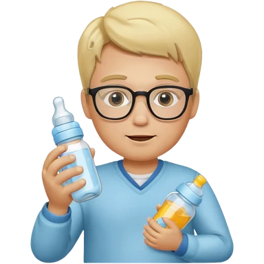 blonde man with glasses with baby bottle emoji