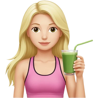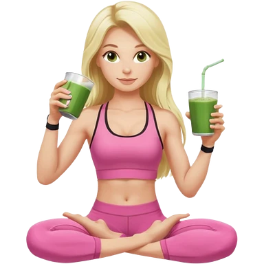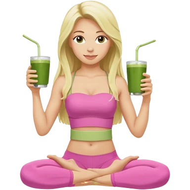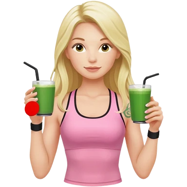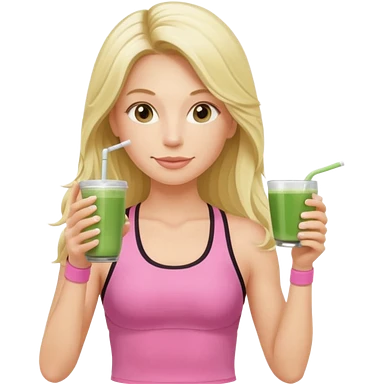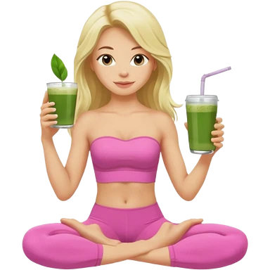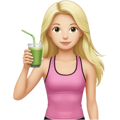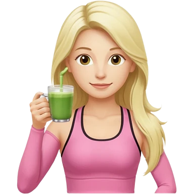 blonde pilates instructor in pink drinking matcha emoji | AI Emoji Generator