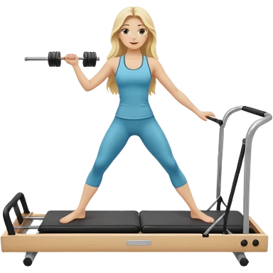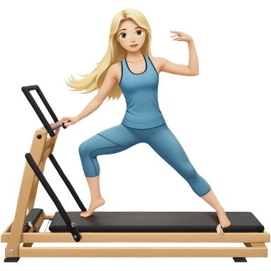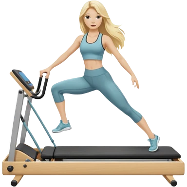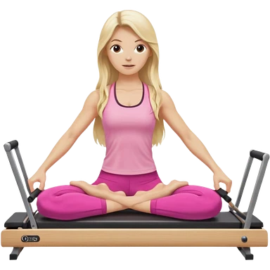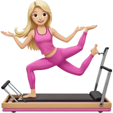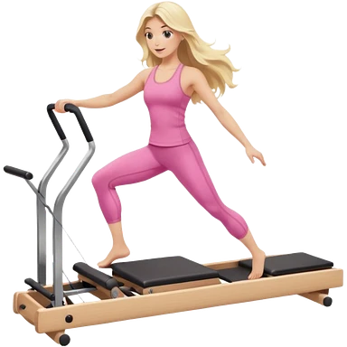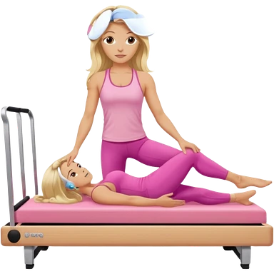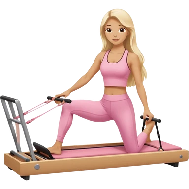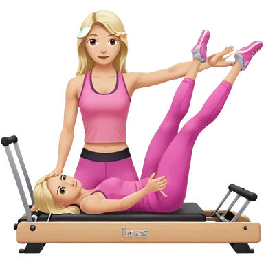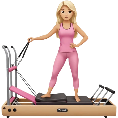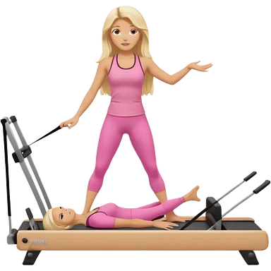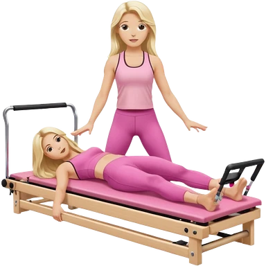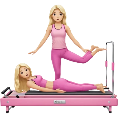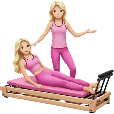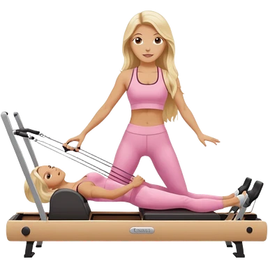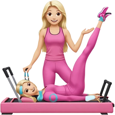 long haired blonde Pilates instructor teaching reformer in pink set emoji