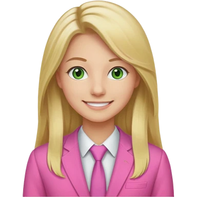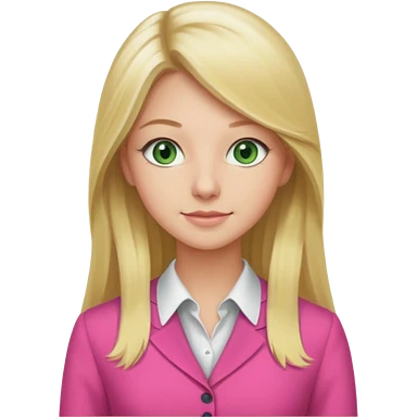 long blonde hair, real estate broker, 20 years old, green eyes, cute pink corporate dress emoji