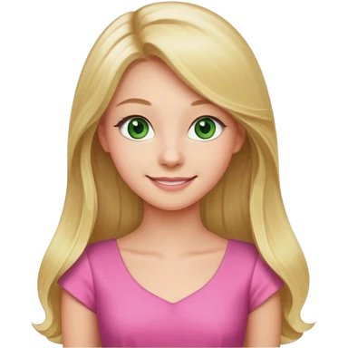long blonde hair, real estate broker, 20, smile, green eyes, pink corporate clothes emoji