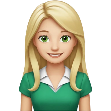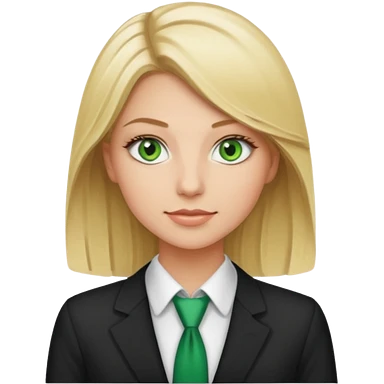 long blonde hair, real estate broker, 20 years old, green eyes, cute corporate dress emoji