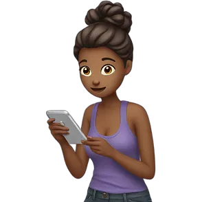 Blonde woman in pyjamas drinking tea scrolling on her phone emoji