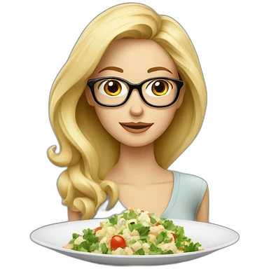 Blonde skinny woman with glasses with a large plate of olivier salad emoji