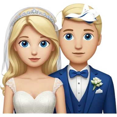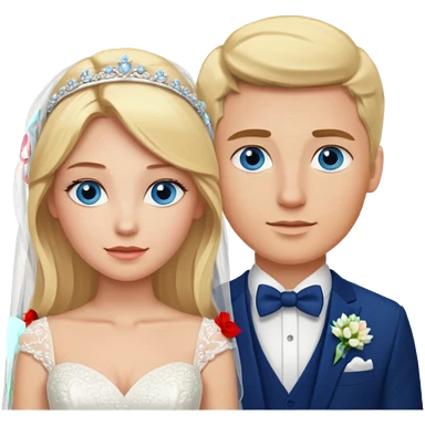 Blonde wife and blonde husband getting married Both Blue eyes emoji