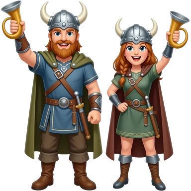 Blonde Viking cheering with horn glass both genders emoji | AI Emoji Generator