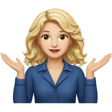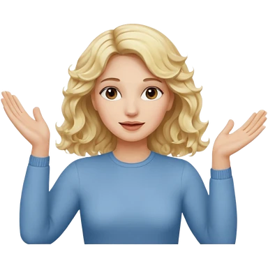 blonde girl with shoulder length wavy hair doing an i don't know pose wearing a light pink shirt emoji