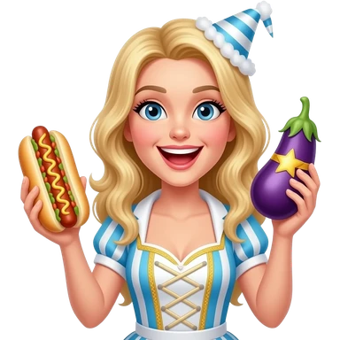 Blonde white girl eating eggplant (the eggplant is wearing a chef’s hat) emoji | AI Emoji Generator