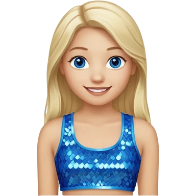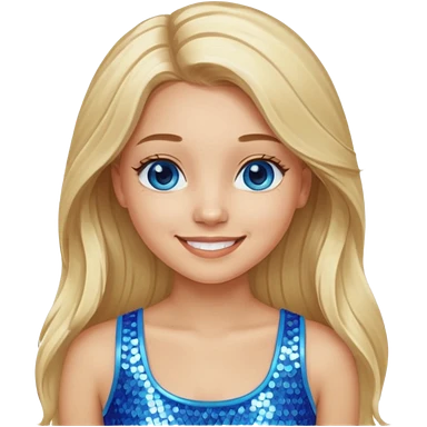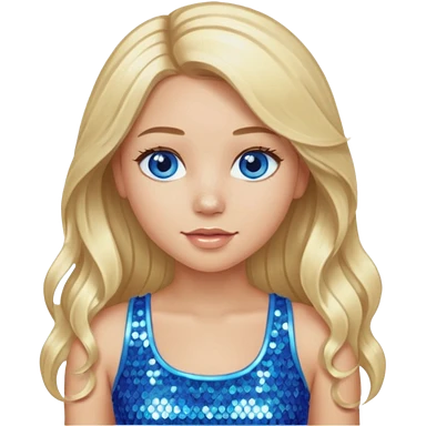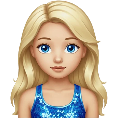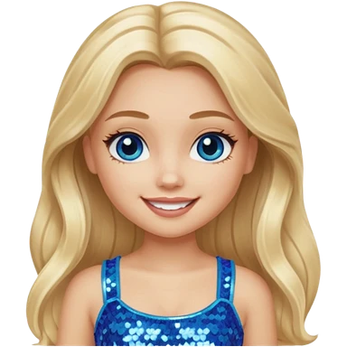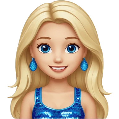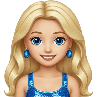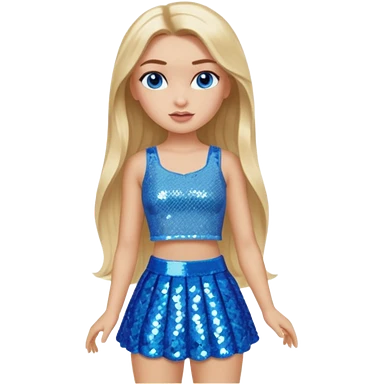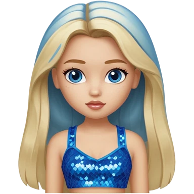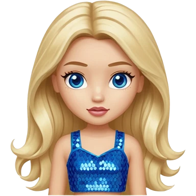 Close from Bratz with long light blonde hair, light skin, blue eyes, blue sequin crop top emoji