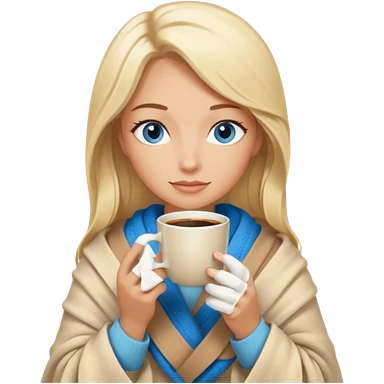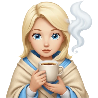 Blonde with blue eyes wrapped yphot coffee emoji | AI Emoji Generator