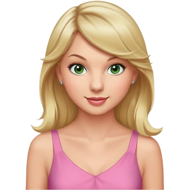 Smiling taylor swift green eyes long blonde hair in tight pink dress emoji