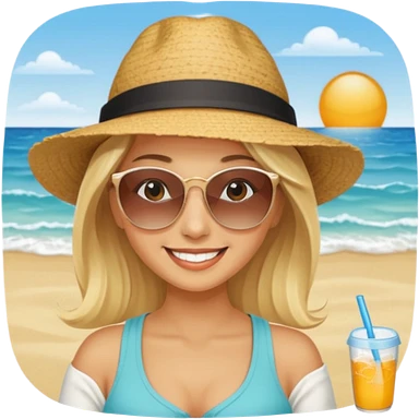 Silly, chubby, Blonde middle aged woman on beach emoji