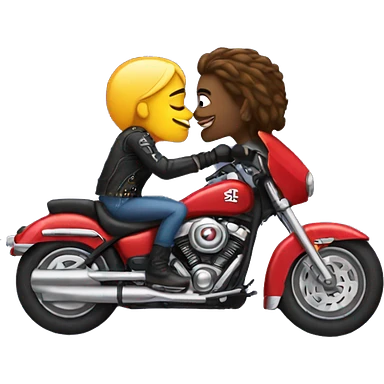 Black guy with brown hair riding motorcycle with bkack girl with blonde girl on the back emoji