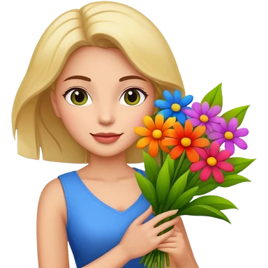 blonde woman with big bouquet of flowers emoji | AI Emoji Generator