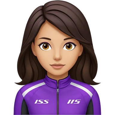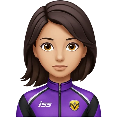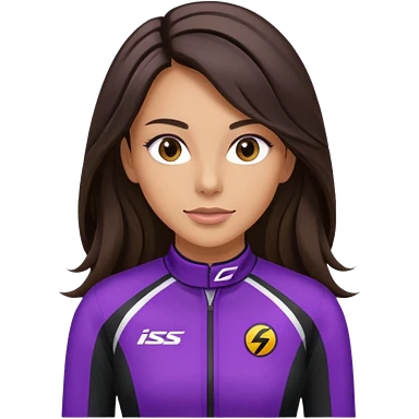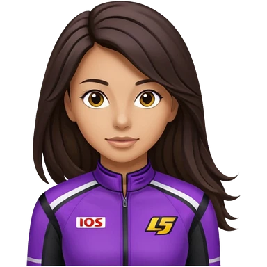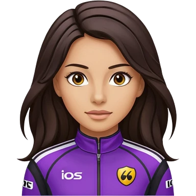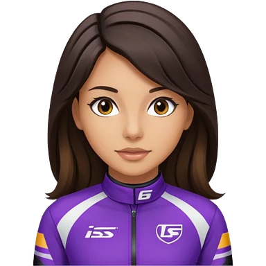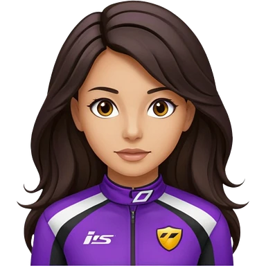 brunette long hair woman with black racing outfit with single purple strips emoji