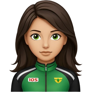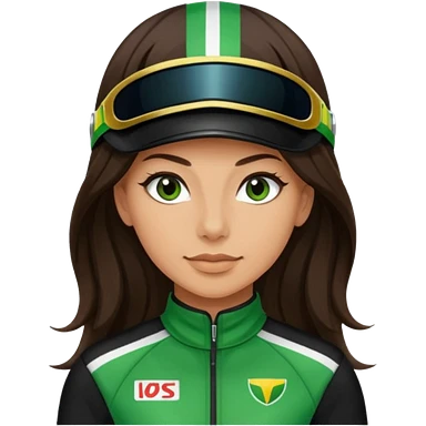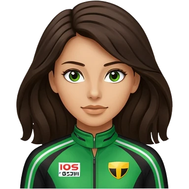 brunette long hair woman with black racing outfit with green strips emoji