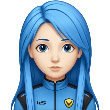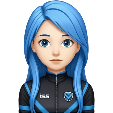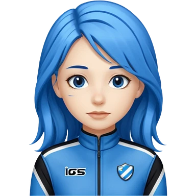 blue long hair woman with black racing outfit with blue strips emoji