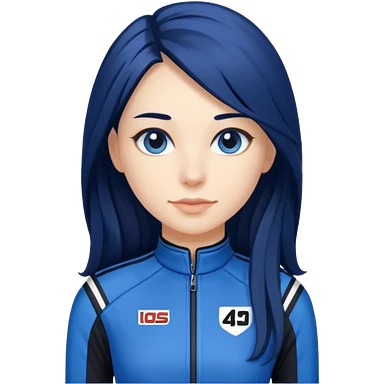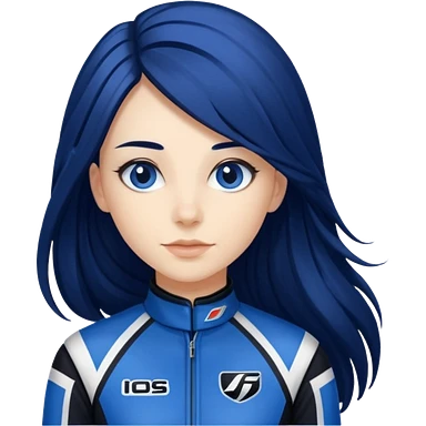 dark blue long hair woman with black racing outfit with blue strips emoji