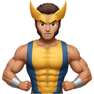 Make a brown-eyed man in a wolverine costume who wonders? emoji