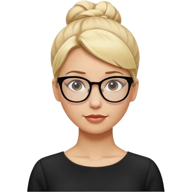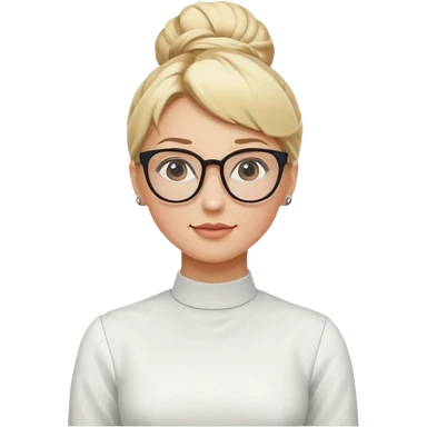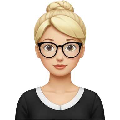 Blonde Women with Bun, Office Woman – tight blonde high bun, glasses, white blouse, confident look. emoji | AI Emoji Generator