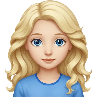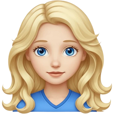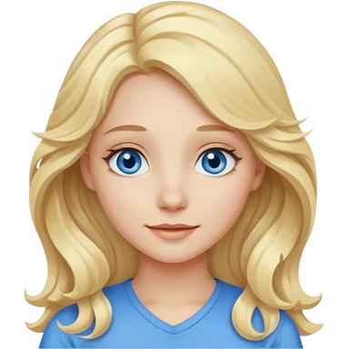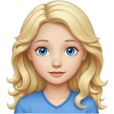 A pale girl with blue eyes and long and blonde , wavy hair , smiling emoji