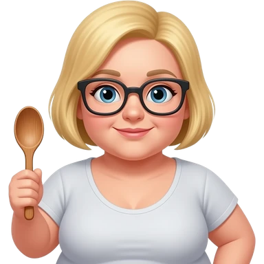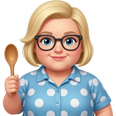 blondie some overweight woman cooking, glasses, wooden spoon, buzz cut emoji | AI Emoji Generator