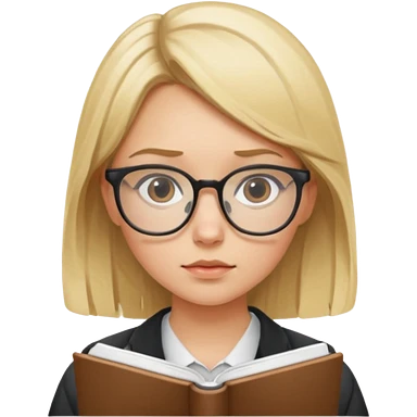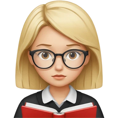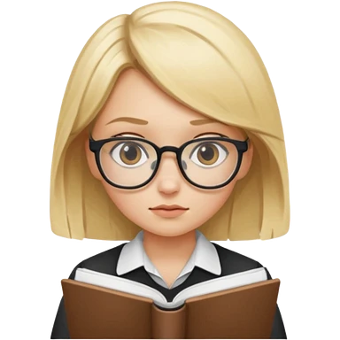blondy girl with glasses learn analytics she is so pretty and seems like director bitch of company. with long hair and red lips and with makeup. She is data analyst emoji | AI Emoji Generator