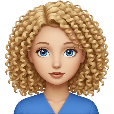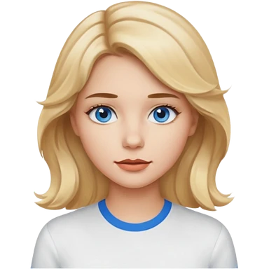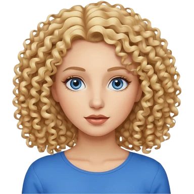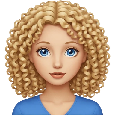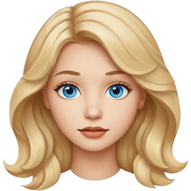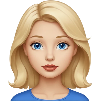 blondynka srednio krecone wlosy i niebieskie oczy obrysowane usta na jasny braz mloda emoji | AI Emoji Generator