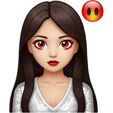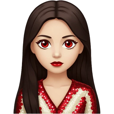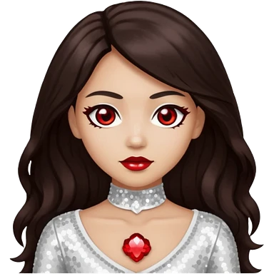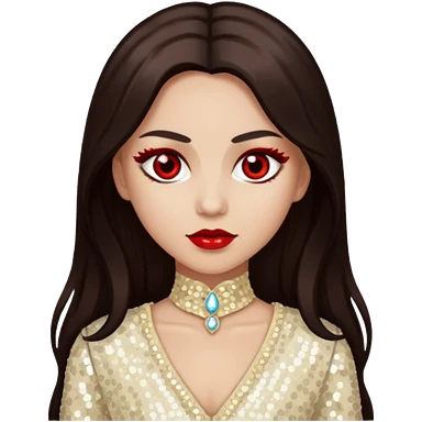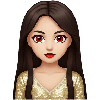 Bloody Mary with light skin, long dark brown hair, red eye, ivory sequin outfit emoji