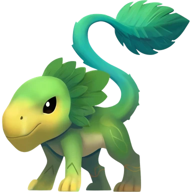 Tropical feathery shamanic cultural Greenish beautiful handsome gorgeous aesthetic colorful vibrant Vernid-Trico-species-Fakemon-creature by LiLaiRa, 4 legs, 1 tail, random markings, (full body) emoji