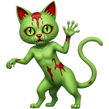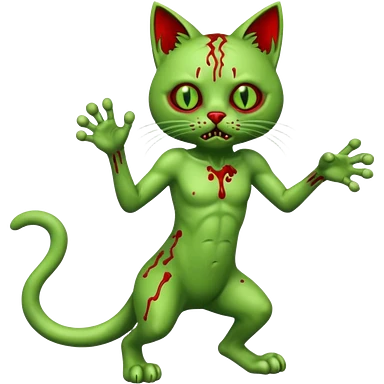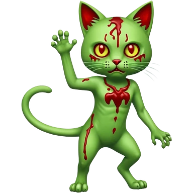 bloody green zombie cat full body with action pose emoji | AI Emoji Generator
