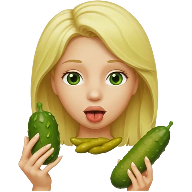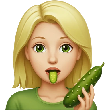 Blonde Naked woman pickle in mouth emoji